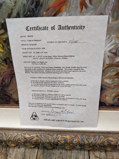 Born in 1941 in Valencia, Spain, Royo began demonstrating his artistic talent early. At the age of 9 his father, a prominent physician and avid art enthusiast, employed private tutors to instruct Royo in drawing, painting, and sculpture. When Royo turned 14 he entered the San Carlos Royal Academy of Fine Arts in Valencia. Upon turning 18 Royo continued his artistic studies privately with Adolfo Ferrer Amblat, Chairman of Art Studies at the San Carlos Academy. He also visited the major museums in Europe at this time to study the famous masters-Velasquez, Goya, Renoir, Monet, and Sorolla among others.